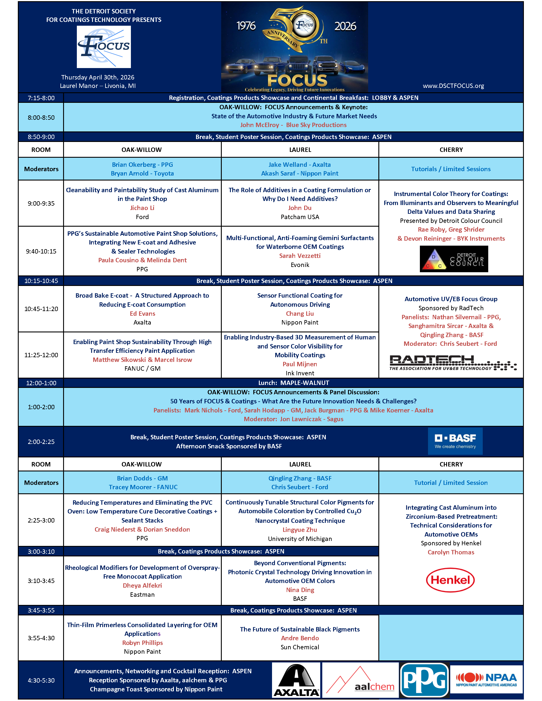 Join the coatings industry at the FOCUS conference to see advancements in coatings, color development, sustainability and application. As the automotive industry evolves, innovation continues to be needed. Keep pace with these new developments at the one-day conference held at Laurel Manor in Livonia, Michigan.