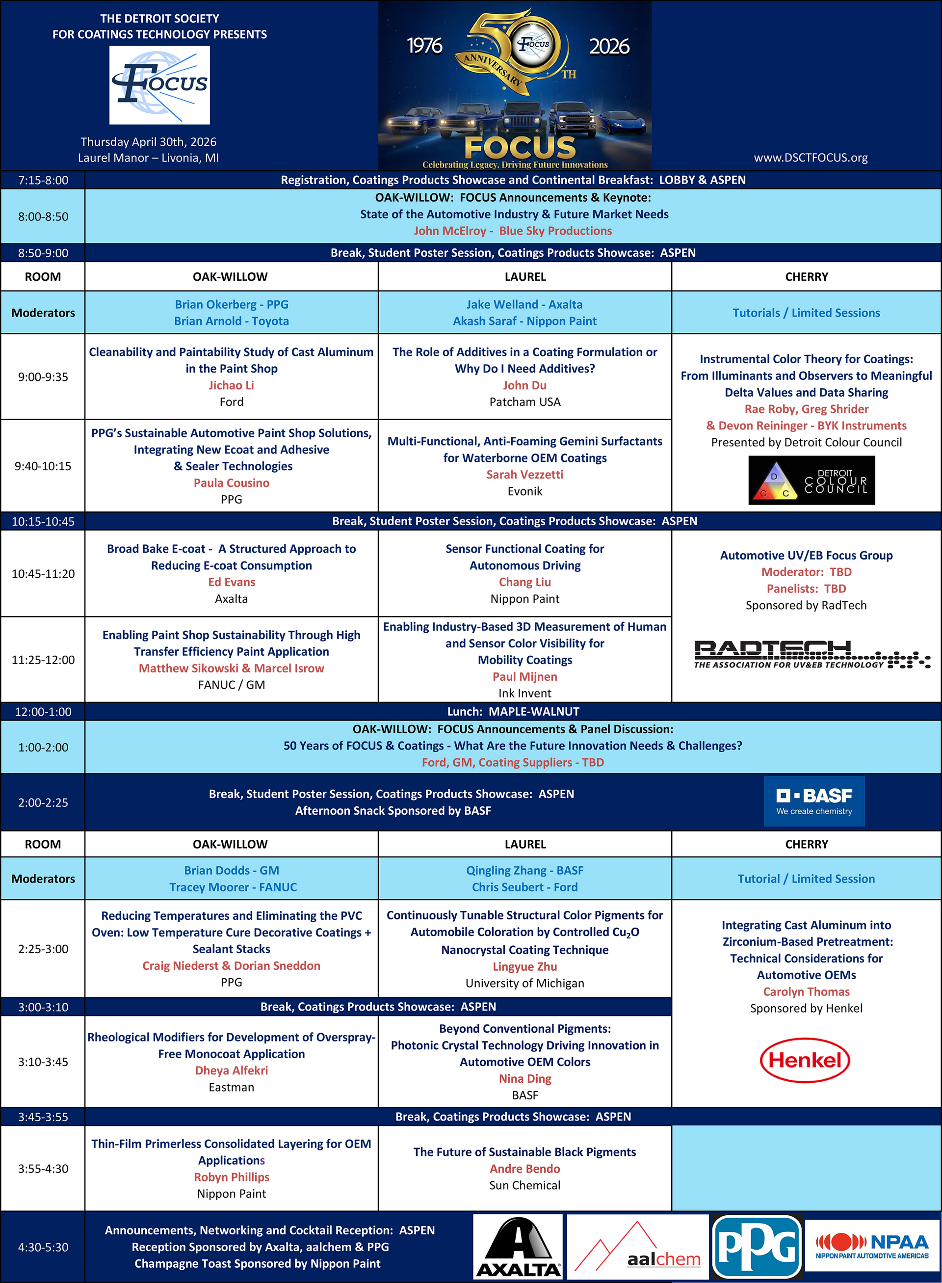 Join the coatings industry at the FOCUS conference to see advancements in coatings, color development, sustainability and application. As the automotive industry evolves, innovation continues to be needed. Keep pace with these new developments at the one-day conference held at Laurel Manor in Livonia, Michigan.